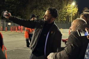 此前備受詬病的主帥阿莫林也在賽后獲得追捧,在比賽結束兩小時后仍然在為曼聯球迷們簽名合影,他在拿起手機自拍時也露出了開心的笑容。
