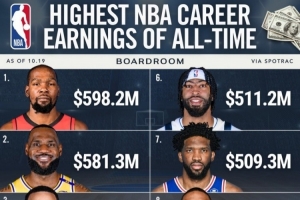 相關新聞>>>NBA歷史總薪資TOP10均為現役球員!杜蘭特第一 7人已超5億美元