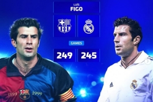 菲戈:巴薩249場(chǎng)、皇馬245場(chǎng)