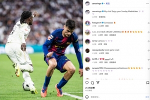 卡馬文加在賽后通過社媒曬出自己同佩德里的對位照,并配文:“我的俱樂部!享受周日吧,馬德里主義者們!”