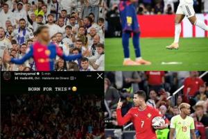 國家德比賽前,亞馬爾曬客場4-0皇馬照片,最終巴薩1-2不敵皇馬。
