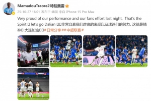 賽后,馬馬杜-特拉奧雷在社媒寫道:“非常自豪我們昨晚的表現以及球迷們的努力, 這就是精神!大連加油!”
