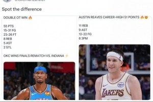 賽后美媒露天看臺曬出了里夫斯的數(shù)據(jù)但沒寫上罰球數(shù)據(jù),雷霆隨隊記者Clemente Almanza曬出了此前亞歷山大對步行者砍下55分的比賽數(shù)據(jù)(有寫上罰球罰球),改記者寫道:“發(fā)現(xiàn)了區(qū)別。”