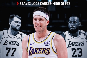 今天里夫斯21投12中,三分10中6,罰球22中21砍下51分11籃板9助攻,正負值+22,刷新各種紀錄,助湖人客場127-120力克國王。