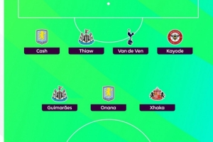 后衛(wèi):卡什(阿斯頓維拉)、佳夫(紐卡斯?fàn)枺⒎兜路遥岽蹋⑦~克爾-卡約德(布倫特福德)