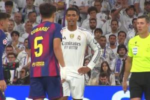 當時,貝林厄姆看到佩德里倒地抱怨犯規,便走向他,輕輕拍了拍他的頭,對巴薩球員的抱怨顯得頗不以為然,還做出幾個表示“難以置信”的手勢。
