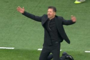 兒子我給你跪了??小小西蒙尼空門踢中橫梁,西蒙尼崩潰攤手跪地