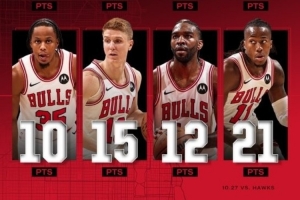 集體發(fā)揮&助隊(duì)開季3連勝!公牛官推曬八人得分上雙數(shù)據(jù)海報(bào)