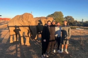 當地時間周一,皇馬后衛赫伊森與親友前往馬德里野生動物園游覽,他在個人社媒曬出與大象的合照。