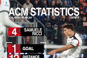 斬獲首球!米蘭官方曬里奇數(shù)據(jù):跑動(dòng)距離12公里,傳球成功率97%