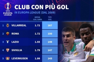 體育資訊9月25日訊 日前,德國轉會市場網站統計了2009年以來歐聯杯進球數排行,比利亞雷亞爾以167球居首,塞維利亞第四、曼聯第六。