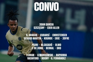 巴薩客戰奧維耶多大名單:萊萬領銜鋒線,亞馬爾缺席小將德羅在列