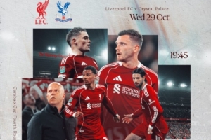 體育資訊10月29日訊 北京時間10月30日3:45,聯(lián)賽杯第4輪,利物浦主場對陣水晶宮,利物浦官方發(fā)布海報預(yù)熱。