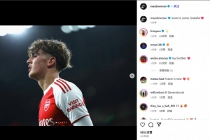 他也以15歲302天成為阿森納隊史最年輕首發,道曼也在賽后通過社媒曬出自己的比賽照并紀念道:“期待更多,感恩!”