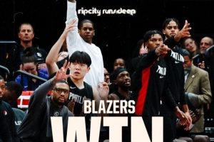 開拓者官方曬贏球海報:利拉德&楊瀚森入鏡 替補席眾將慶祝