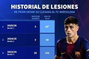 再次受傷!佩德里近5個賽季受傷休戰12次,缺席91場比賽、514天