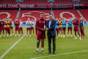 今天的官方訓練開始前,俱樂部為兩位球員舉行頒獎儀式。俱樂部總經理沙良昌為萊昂納多頒發第25輪最佳球員獎杯,為李帥贈送百場紀念球衣。