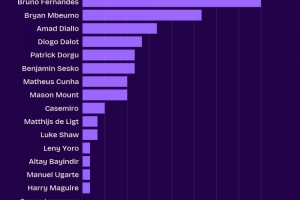 曼聯隊內英超創造機會榜:B費24次、姆伯莫16次、阿瑪德10次