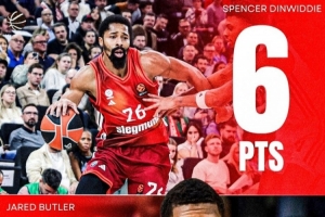 丁威迪在拜仁86-70擊敗博洛尼亞的比賽中,出場20分鐘,7中1,拿到6分3助。而巴特勒則在紅星99-92擊敗特拉維夫馬卡比的比賽中,僅僅出場2分鐘,主要數據全部為零不說,還有兩次犯規。