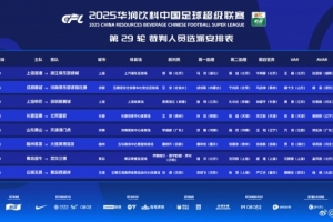 中超第29輪裁判:傅明執法海港vs浙江 沙特裁判執法海牛vs三鎮