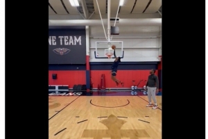 體育資訊10月31日訊 今天遭遇跟腱斷裂的鵜鶘球員德章泰-穆雷更新推特,他一段自己轉身空接暴扣的視頻,并寫道: