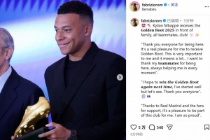 姆巴佩領取歐洲金靴:感謝隊友、皇馬和球迷,我們能贏得很多冠軍