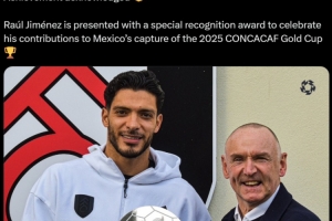 PFA官方表示:“勞爾-希門尼斯獲得了一項特別表彰獎,以紀念他為墨西哥隊贏得2025年中北美及加勒比地區金杯賽冠軍所做出的貢獻。”