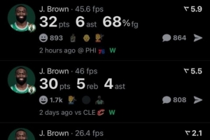 單核帶隊!杰倫-布朗過去四場比賽3次砍下30+ 其中還有一場40+