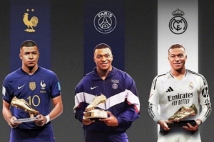 體育資訊11月1日訊 日前,姆巴佩領取2024-25賽季歐洲金靴獎。他是首位在三隊分別拿到世界杯金靴(法國隊)+歐冠金靴(巴黎)+歐洲金靴獎(皇馬)的球員