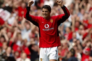 2003年11月1日,C羅在曼聯(lián)對陣樸茨茅斯的英超比賽中替補出場,傳射建功,以任意球破門斬獲曼聯(lián)生涯處子球。