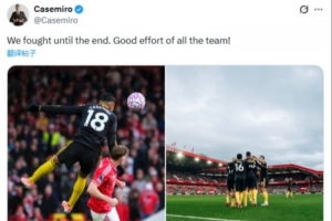 賽后,卡塞米羅在社交媒體曬出自己頭球以及與隊友慶祝的照片,并配文寫道:“我們戰斗到了最后,全隊都付出了很棒的努力!”