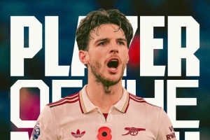頭球破門!賴斯當選對陣伯恩利一役阿森納隊內最佳球員