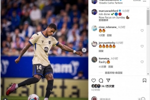 拉什福德社媒曬出比賽照片,配文:“任務完成,現在專注于周日的比賽(對陣皇家社會)。”