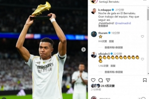 姆巴佩社媒曬出賽前展示歐洲金靴獎(jiǎng)杯的照片,配文:“伯納烏的華彩之夜,全隊(duì)都表現(xiàn)出色,我們要繼續(xù)保持!Hala Madrid!”