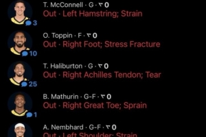 這場比賽堪稱超級殘陣,一共起名球員缺陣,分別是哈利伯頓、馬瑟林、托平、內姆哈德、麥康納、卡梅隆-瓊斯和麥克朗。