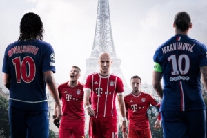 拜仁官方社媒發布海報為這場強強對話預熱,拜仁方面羅本、里貝里、施魏因斯泰格出鏡,巴黎則有小羅、伊布在列。