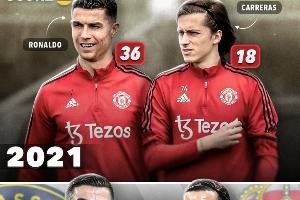 2021年,C羅、卡雷拉斯一同效力曼聯