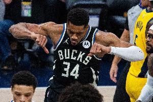 體育資訊11月4日訊 NBA常規賽,雄鹿117-115擊敗步行者,字母哥翻身后仰跳投絕殺。