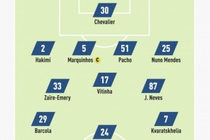 隊(duì)報(bào)預(yù)測巴黎首發(fā):巴爾科拉、馬尤盧、K77三叉戟,登貝萊替補(bǔ)
