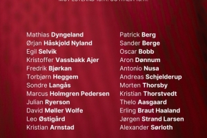 中前場:阿恩斯塔德(奧胡斯)、帕特里克-伯格(博德閃耀)、桑德-博格(富勒姆)、鮑勃(曼城)、冬納姆(圖盧茲)、努薩(萊比錫)、謝爾德魯普(本菲卡)、托斯比(熱那亞)、托爾斯特韋特(薩索洛)、阿斯高(流浪者)、哈蘭德(曼城)、拉爾森(狼隊)、瑟爾洛特(馬競)