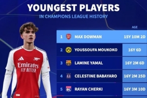 體育資訊11月5日訊 歐冠聯賽階段第4輪比賽,阿森納在客場以3-0的比分完勝布拉格斯拉維亞。本場比賽,阿森納15歲小將道曼替補登場成歐冠歷史出場最年輕球員。