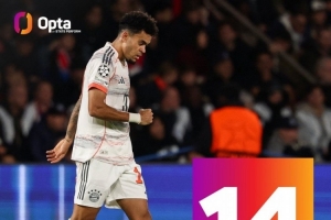據Opta統計,迪亞斯已在歐冠打進14球,追平杰克遜-馬丁內斯,并列成為歐冠歷史進球最多的哥倫比亞球員。