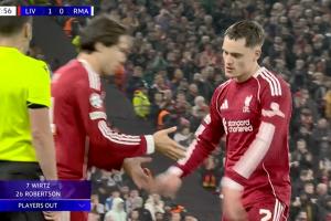 體育資訊11月05日訊 歐冠第4輪利物浦vs皇馬第89分鐘,利物浦再次做出2個(gè)換人調(diào)整,維爾茨、羅伯遜被換下,凱爾凱茲、基耶薩替補(bǔ)登場。