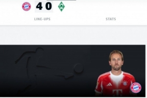 梅開二度!官方:凱恩當選拜仁4-0不萊梅的全場最佳球員