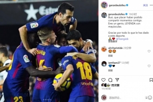 體育資訊9月27日訊 布斯克茨宣布本賽季結束后退役,前巴薩隊友德烏洛費烏社媒發文致敬。