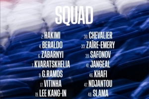 中場:17-維蒂尼亞、24-馬尤盧、33-扎伊爾-埃梅里、46-卡哈菲、48-斯拉馬