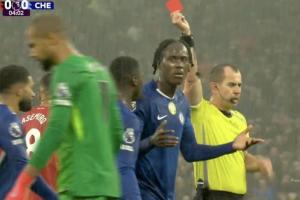 上輪英超,十人切爾西1-2不敵十人曼聯(lián),比賽開場5分鐘,切爾西門將桑切斯就因出擊放倒姆伯莫被紅牌罰下,當(dāng)時(shí)查洛巴對(duì)桑切斯“死亡凝視”。