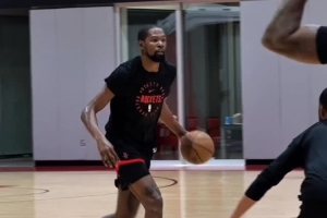 體育資訊9月29日訊 今日,火箭官方推特曬出一段前鋒杜蘭特的投籃訓練視頻。