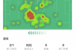進1球、射門2次射正1次、丟失球權19次、預期進球0.8