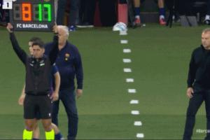 西甲第7輪巴薩2-1擊敗皇家社會,在傷停補(bǔ)時(shí)的最后1分鐘,佩德里被換下。